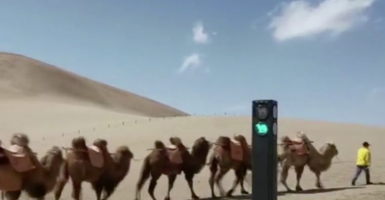 China colocó un curioso nuevo semáforo en la provincia de Gansu, pero no se trata de una señalización cualquiera, sino de un semáforo para camellos.