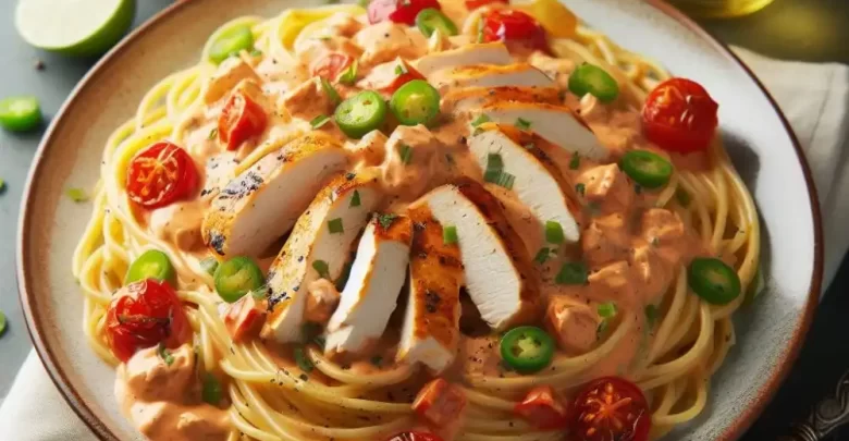 Spaghetti con pollo y crema de chipotle