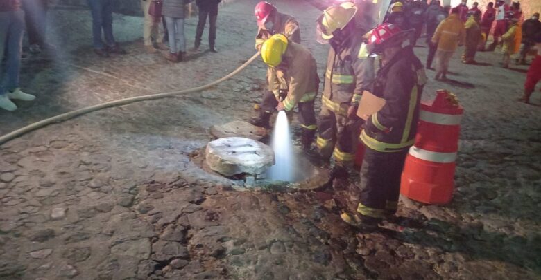 Presuntamente, el combustible en la red de agua potable en Tepeapulco se debe a una toma clandestina de combustible por lo que, el cuerpo de Bomberos ha vertido espuma en el drenaje para encapsular el gas y evitar explosividad.