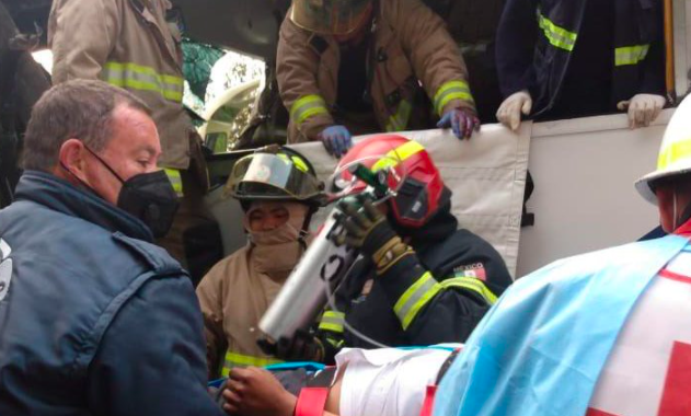 - Elementos de cruz roja mexicana de Huixquilucan acudieron al lugar y con equipo especializado rescataron a un pasajero que quedó prensado entre los fierros retorcidos del autobús.