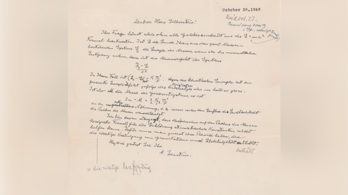 “Su pregunta puede responderse con la fórmula E = mc2, sin ninguna erudición”, escribió Einstein en la carta escrita con membrete de la Universidad de Princeton, según una traducción proporcionada por RR Auction.