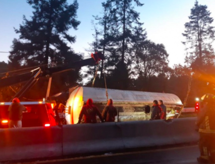 Vuelca pipa en la México-Toluca; cierran ambos sentidos