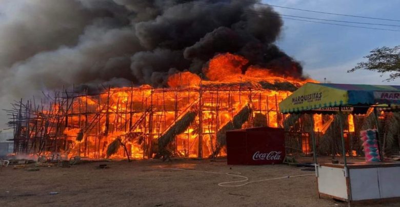 Cientos de espectadores se encontraban en el lugar, cuando un “volador”, un fuego pirotécnico, cayó sobre la estructura hecha con palmas y madera, desencadenando el incendio que destruyó el coso.